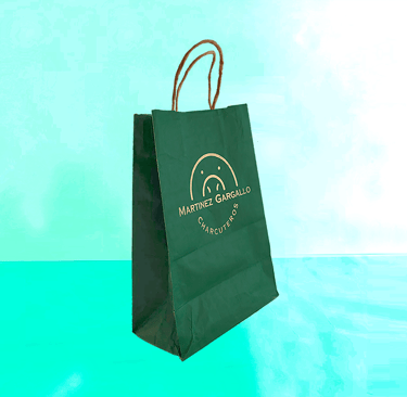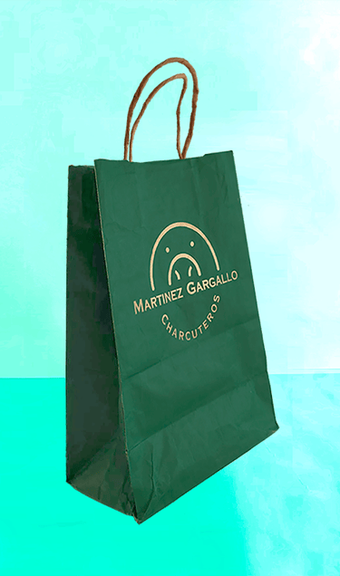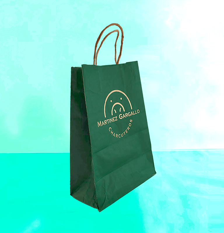 Bolsa impresa, un color plano más tinta metálica dorada.