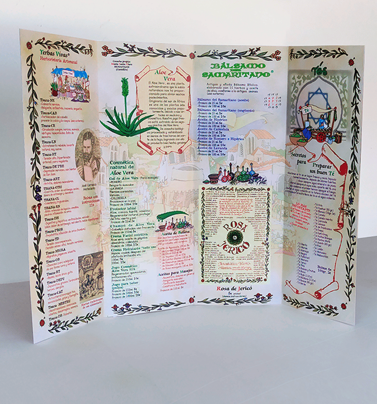 Catálogo de producto. Mercado Medieval Tamaño A3 cara B. Cuatro pliegues de 10'50cm. al centro.