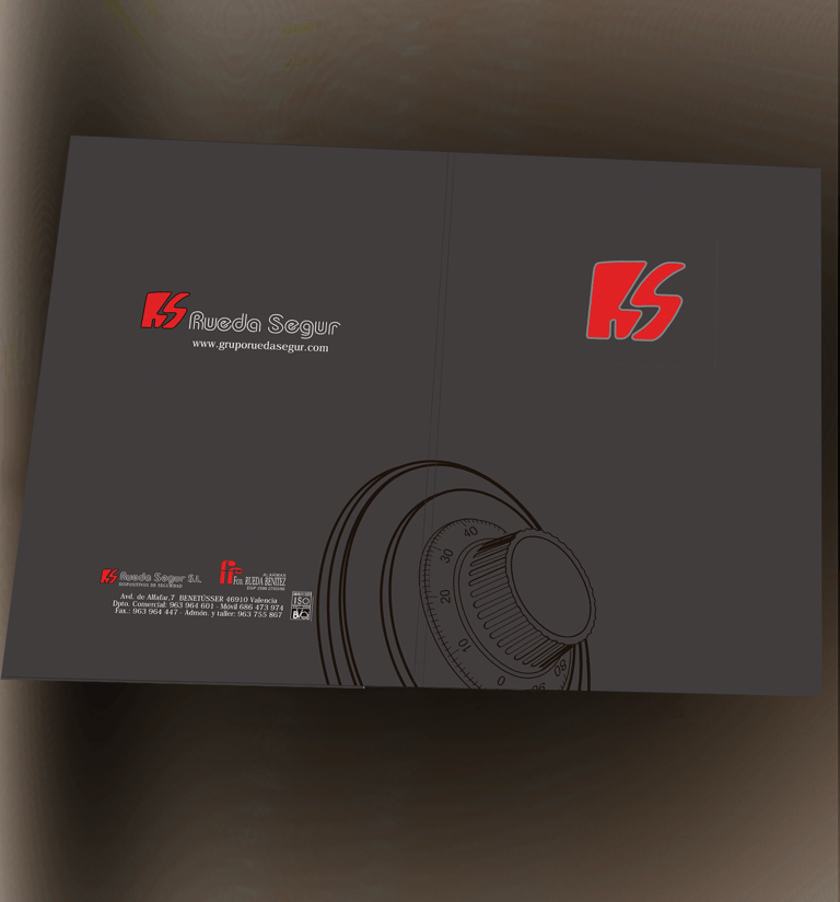 Carpeta de presupuestos 2 colores. 1 metálico perfil logo. Reserva UVI brillo dibujo